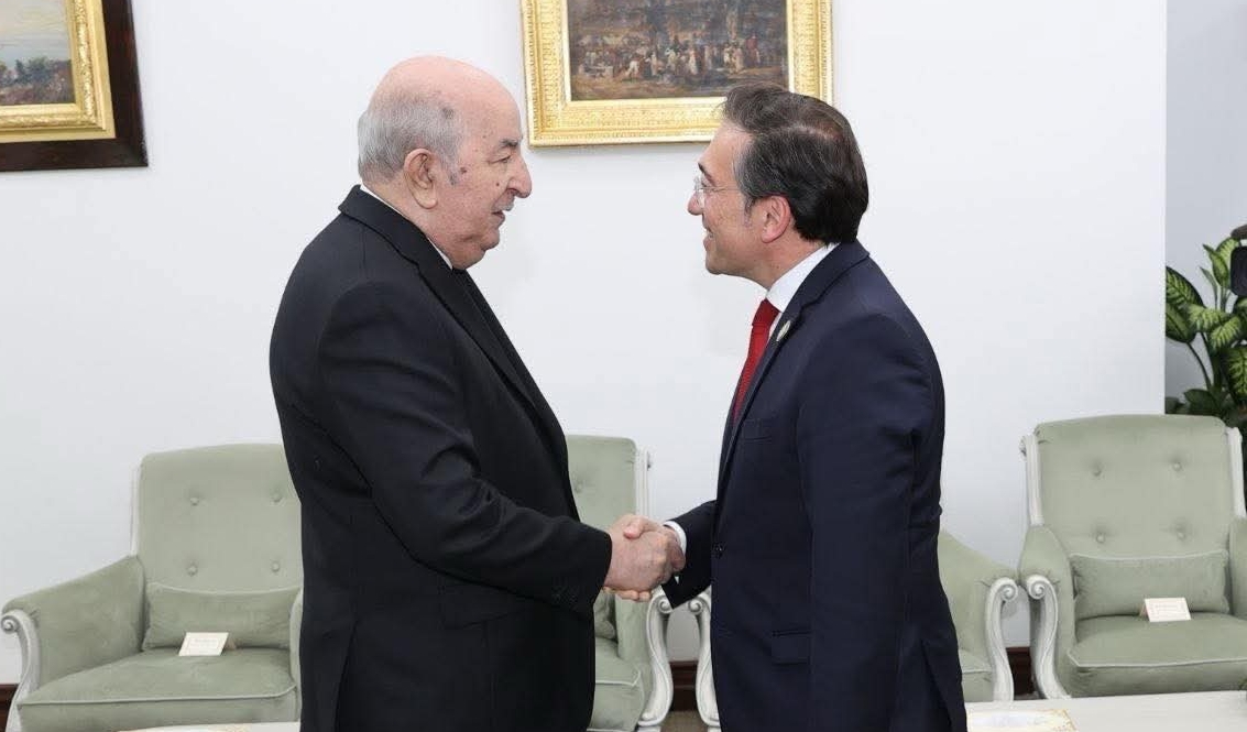 وجاء في البيان: “استقبل رئيس الجمهورية، السيد عبد المجيد تبون، اليوم 26 مارس 2026، وزير الشؤون الخارجية لمملكة إسبانيا، السيد خوسيه مانويل ألباريس، الذي يؤدي زيارة رسمية إلى الجزائر”.